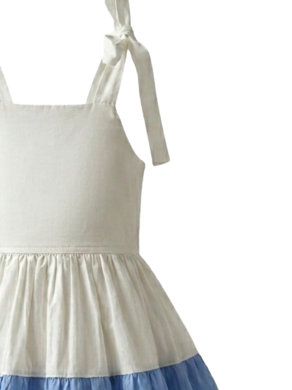 Girls’ Cotton Dress – Tricolor, Sleeveless & Adjustable, Fresh and Comfortable, Includes Matching Head Bow-SELEN