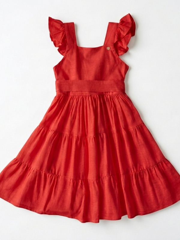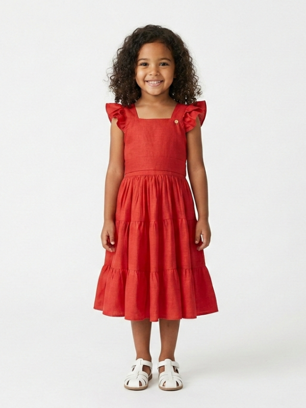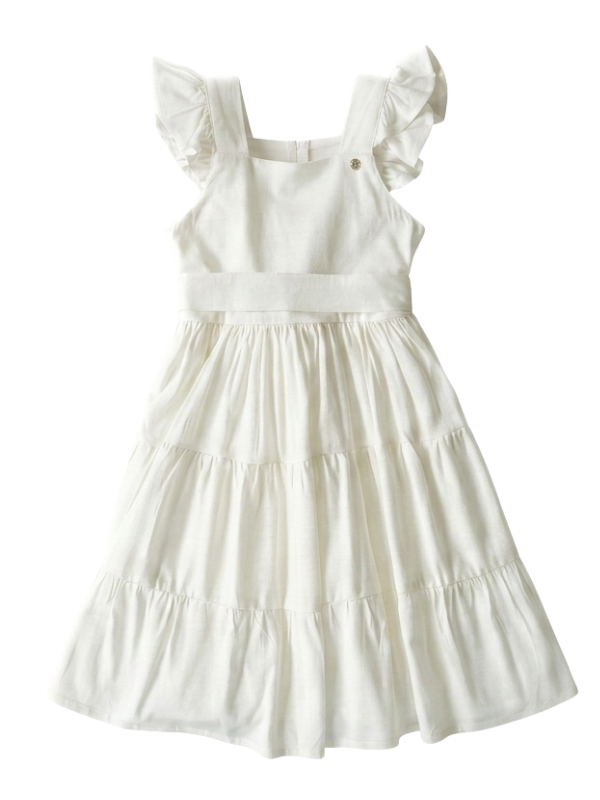 White Cotton Dress for Toddler – Sleeveless with Ruffles, Fresh and Comfortable- SELEN